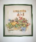 Il voulait une broderie pour sa cuisine qui est dans les tons verts. J'aurais voulu lui faire un bouquet de fleurs sauvages avec les papillons dans ce style là , mais je n'ai pas réussi à mettre la main dessus !
