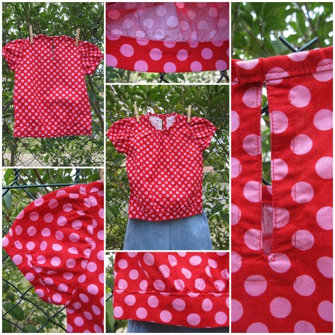 Tissus utilisés et éventuellement sa provenance : Coton rouge à pois roses de chez Linna Morata.